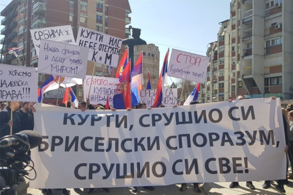 У Косовској Митровици грађани носе заставе Србије и транспаренте, а на једном пише „Курти срушио си Бриселски споразум – срушио си све”, а на другима „Хоћемо наша људска права”, „Стоп Куртијевом терору”, „Курти нас неће отерати са Косова и Метохије”, „Срби са КиМ верују само председнику Вучићу”.