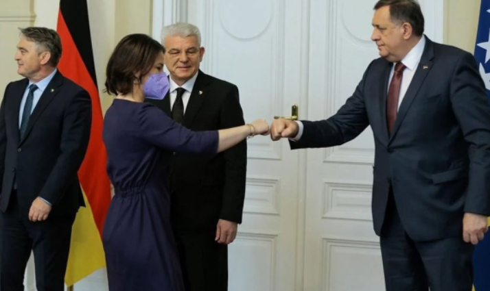БЕРЛИН/САРАЈЕВО – Министарка спољних послова Њемачке Аналена Бербок захвалила је српском члану Предсједништва БиХ Милораду Додику на љубазном пријему и разговору, заједно са његовим колегама у Предсједништву БиХ, током њене посјете Сарајеву, саопштено је из Кабинета српског члана Предсједништва.