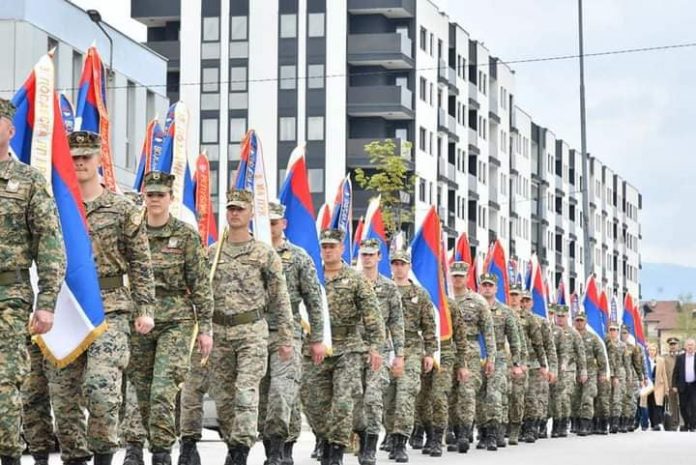 Home Вијести Svečani defile zastava jedinica Vojske Republike Srpske u Istočnom Sarajevu