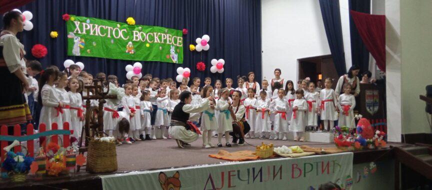 Синоћ је поново као некада организована велика приредба Дјечијег вртића „Бамби“, инспирисана највећим хришћанским празником Васкрсом.