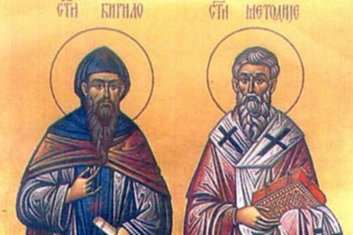 Свети Ћирило (право име Константин, име Ћирило узео је након замонашења, рођен у јулу 826. године, умро 14. фебруара 869. у Риму) и Методије (рођен између 816. и 820., умро 6. априла 885. године), обојица су рођена у Солуну. Познати су и као Света браћа и словенски апостоли. Њихов отац Лав био је високи византијски војни заповједник (друнгар). Најранију младост провели су у Солуну који је у то вријеме посве окружен Словенима. Методије постаје управник једне архонтије у источној Македонији, док је Ћирило, одгојен на царском двору, након завршених филозофских и теолошких студија постављен за библиотекара Хагије Софије (цркве свете Софије) у Цариграду и учитеља филозофије на цариградској високој школи.