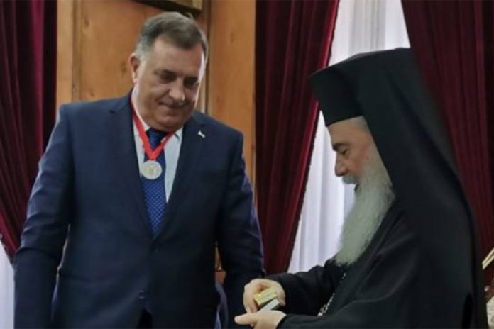 Home Република Српска Patrijarh Teofil uručio Dodiku i Orden Jerusalemske patrijaršije; Poziv patrijarhu da posjeti...