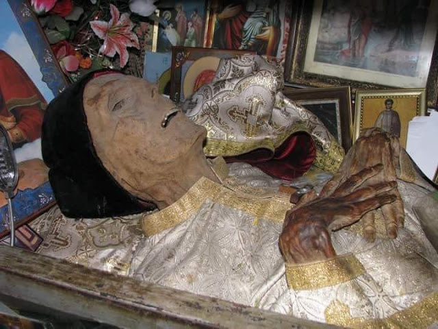 Тога дана када је Гогољ дошао на поклоњење светитељу који се слави 25.децембра по новом календару са великом торжественошћу мошти су се обносиле око града.Међу њима се налазио неки енглески путник одрастао на скепси и рационализму протестантске културе.Он је дозволио себи да примети ,да су сигурно на леђима угодника направљени прорези и тело пажљиво балсмовано.Затим се сасвим приближио моштима.Какво је било његово избезумљење које се граничи са ужасом,када су се мошти светитеља тј.светитељ пред очима свих …лагано придигао из кивота и окренуо своја леђа управо том „идејном“наследнику апостола Томе ,названог „неверујући“:ХАЈДЕ ПРИЈАТЕЉУ,ПОТРАЖИ СВОЈЕ ПРОРЕЗЕ!“