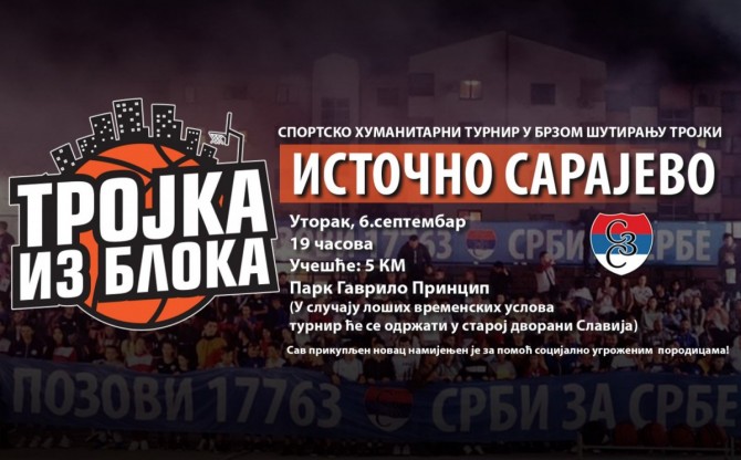 Karavan Trojke iz bloka šesti put stiže u Istočno Sarajevo. Humanitarno sportski spektakl nezaboravan je događaj za sve ljude dobrog srca koji su prethodnih godina na najljepši način prestavili Istočno Sarajevo. Dosadašnji turniri , uspjevali su po brojnosti gledalaca i takmičara, kao i po vrijednosti prikupljenih sredstava da nadmaše jedan drugi, pa postoji veliki optimizam da će ova godina biti najuspješnija! Znajući za privrženost stanovnika Istočnog Sarajeva prema ideji koji Trojka iz bloka promoviše širom svijeta kao i činjenica da je svaki dosadašnji turnir bio bolji od prethodnog, očekujemo nezaboravan spektakl u utorak o kome će se pričati širom Republike Srpske. Da bismo nastavili da šutiramo trojke, pravimo dobru zabavu i širimo dug bratoljublja. pozivamo sve vas da podržite Trojku iz bloka učešćem na turniru, bilo kao šuter, donator ili sponzor.
