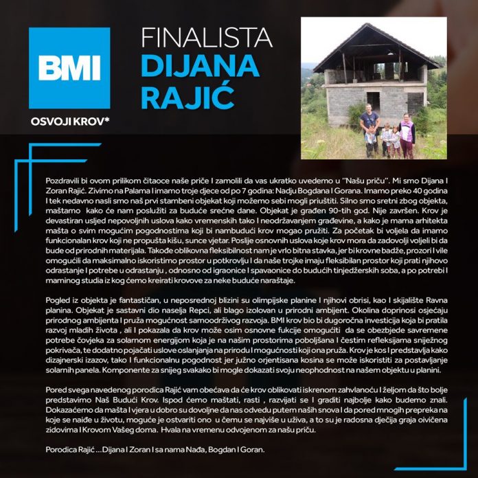 „MBI Bosne i Hercegovine“ organizovali su nagradnu igru, a svodi se na to da će na osnovu prikupljenih lajkova odrediti finalistu koji će dobiti krovnad glavom. U uži krug je ušla i Paljanka Dijana Rajić.