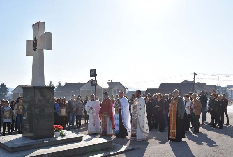 – Света Петка се спомиње ево и до данашњег дана као велика заштитница рода нашега и молитвеница пред престолом Господњим. Непрестано се моли за нас грешне, који иако признајући своју грешност не узносимо ни довољно молитве, ни довољно жртве, а ни себе да би примили милост Божију. Њеним заступништвом и молитвама Света Параскева непрекидно моли за нас грешне који окупљени на овом светом мјесту, упоређујемо њену жртву са жртвама оних чија тијела леже овдје око светог храма. Тијела леже али душе лебде, јер и они дадоше оно своје најважније а то је овоземаљски живот, нешто што човјек само мисли да је највриједније. Положили су свој живот за ближње, да би одрбранили своју нејач, земљу и отаџбину, да би одбранили јеванђење у коме стоји: „Ко положи живот свој за мене достојан је царства небеског, сједења са десне стране Бога Оца и на крају достојан је да га Господ прослави.“ Прослави онако како је прославио Свету Петку, као што је прославио ове наше јунаке чије душе данас заједно са нама у овом светом храму прослављају Свету Петку, њену част и славу, како на земљи тако и у царству небеском, горе гдје су свети и праведни. То ми сви морамо имати на уму, од Свете Петке, светих праведника, мученика и подвижника да они који прослављају Господа овдје на земљи свим срцем искрено, својом душом уз пост и молитву, да њих Господ прослави како на земљи тако још и више на небу. Нека нам је свима сретна и благословена слава, на здравље и спасење Света литургија и Свето причешће. Нека нас заступничким молитвама Свете Петке Параскеве погледа милостиви Господ, заштити нас и подари здравље и срећу – поручио је свештеник Стакић.