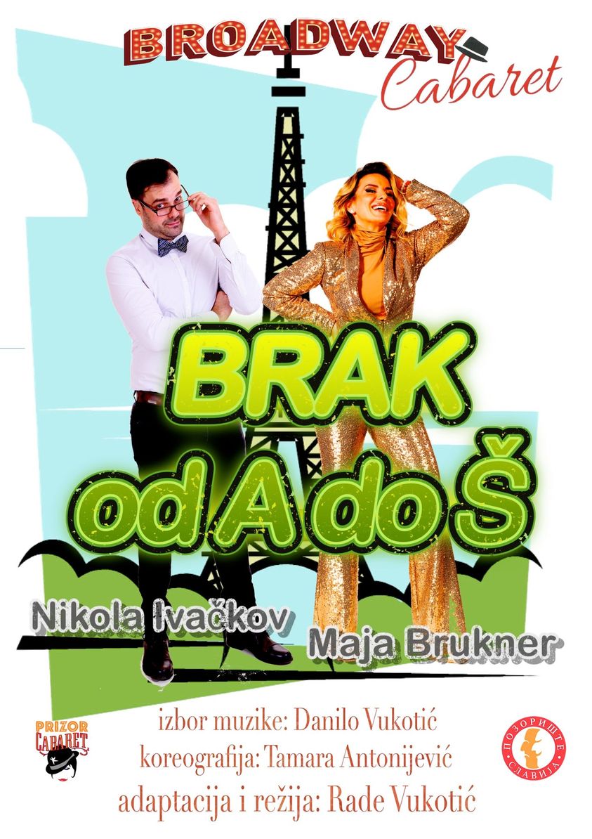 Љубавни кабаре „Брак од А до Ш“ Позоришта „Славија“ из Београда, урађен је по мотивима бродвејског свјетског кабареа и сачињен је у облику вињета повезаних централном темом љубави и односа мушкарца и жене у којима се говори о упознавању, романси, браку, дјеци, љубавницима и новим везама.