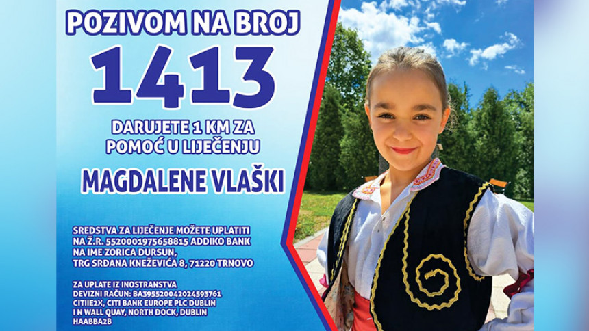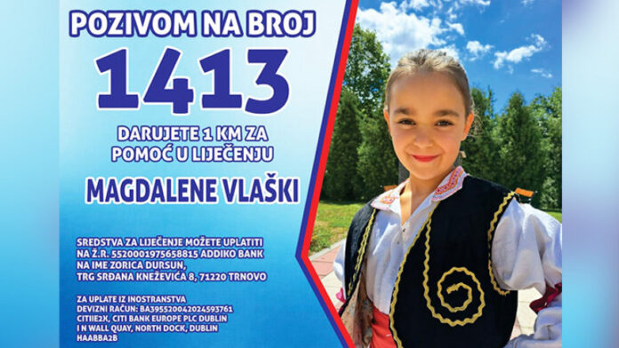 У мрежи МТЛ је од 1. априла, отворен хуманитарни број 1413 који ће бити активан током априла и на који позивом можете даровати једну КМ за Магдаленино лијечење у иностранству.