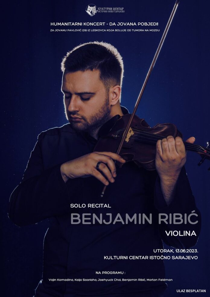 13. јуна са почетком у 19 часова у сали Културног центра Источно Ново Сарајево, биће одржан хуманитарни концерт за помоћ у лијечењу Јоване Павловић из Лесковца, виолинисте, композитора Бењамина Рибића.
