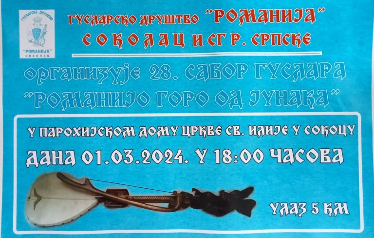 Гусларско друштво „ Романија“ и Савез гуслара Републике Српске организују 1. марта у Сокоцу 28. Сабор гуслара „Романијо горо од јунака“, на којем ће као и претходних година наступати гуслари Сарајевско-романијске и Горњодринске регије што обухвата пола Савеза.