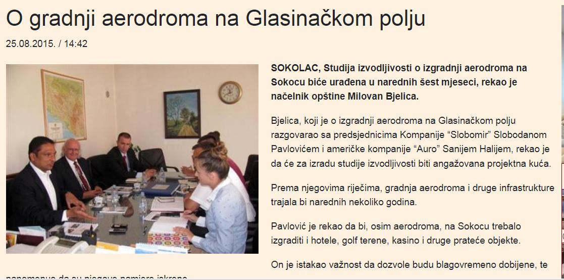 Тако је начелник Бјелица више пута најављивао иизградњу и аеродрома на Сокоцу. У изјави за СРНА од 26.8.2025.године помпезно најављује опет Студију изводљивости у року од шест мјесеци за аеродром.
