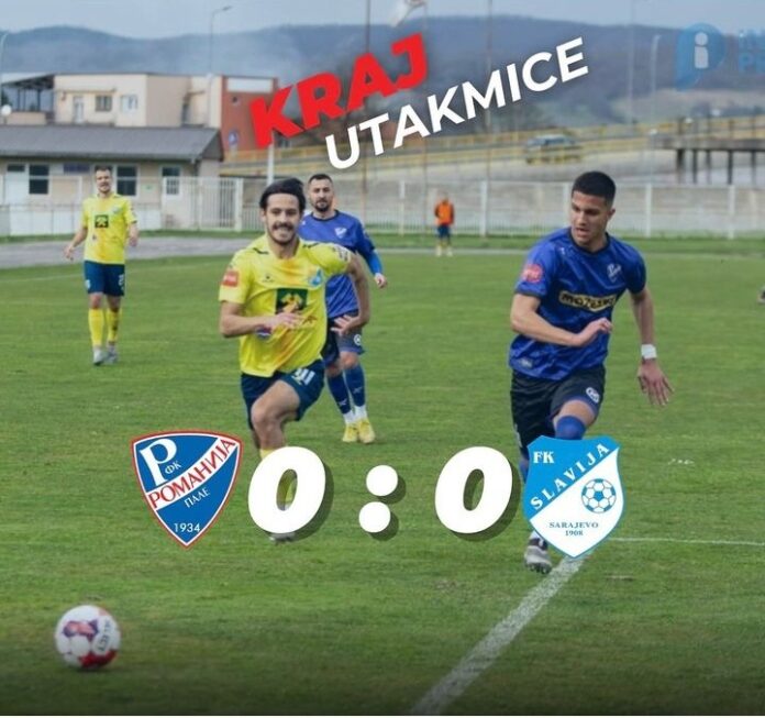 У оквиру 21. кола Прве лиге Републике Српске данас у Палама у градском дербију фудбалери Романије и Славије одиграли су без побједника, а на крају разултат је гласио 0:0.