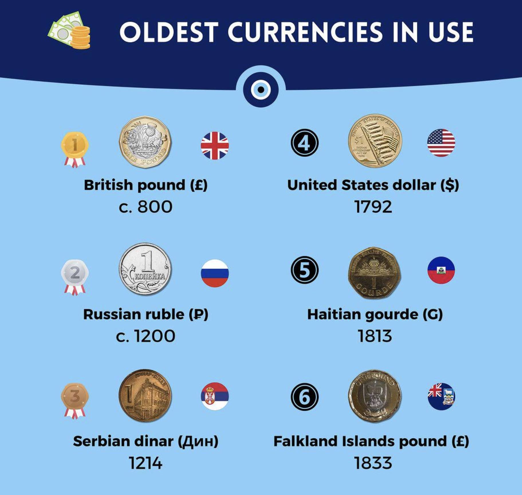 Koju god listu najstarijih novčanih jedinica koje su još uvek u upotrebi da orvorite, prnaćićete tamo srpski dinar među prve tri.