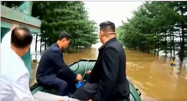 Сјевернокорејски лидер Ким Џонг Ун ударио је чамцем на надувавање у дрво током операције спасавања у поплављеним селима, наводи се у видео-снимку који је објавио Тајмс оф Индија.