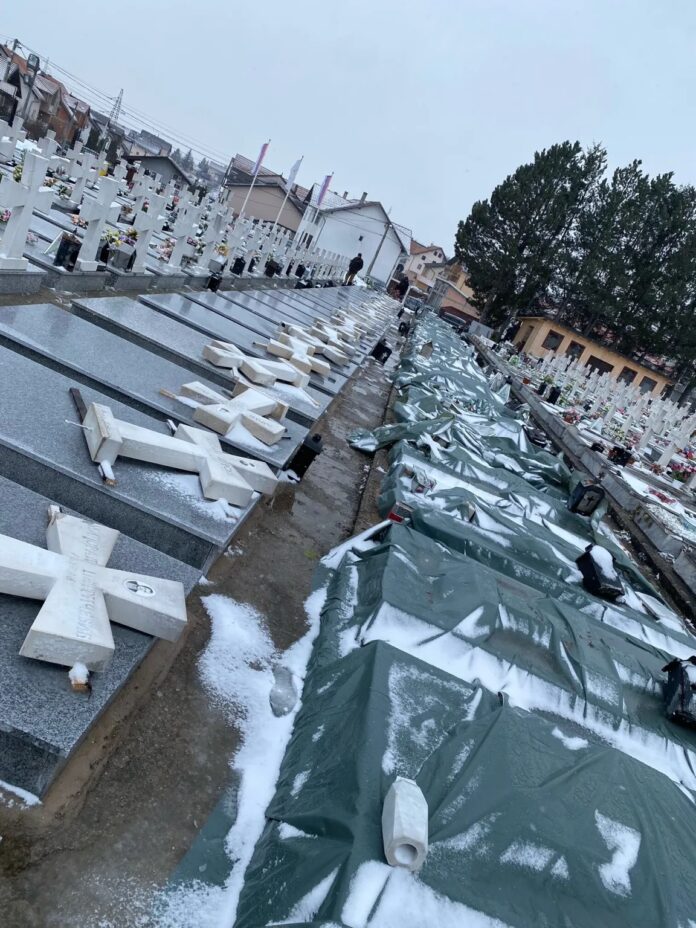 Од 63 гробна мјеста која су требала бити обновљена, нити једно није у потпуности завршено. Дио споменика је дјелимично урађен, али нажалост, због лоших временских услова и лошег квалитета радова, мермерне плоче су већ почеле отпадати, иако је од радова прошло нешто више од мјесец дана, што можете видјети на сликама које вам достављамо на увид.