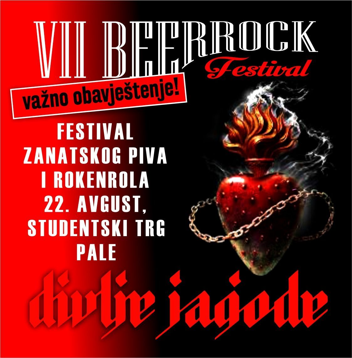 Sedmi Festival zanatskog piva i rokenrola na Palama biće održan 22. avgusta. Program počinje u 18.00 časova, a zvijezde večeri biće legendarni rok bend Divlje jagode.