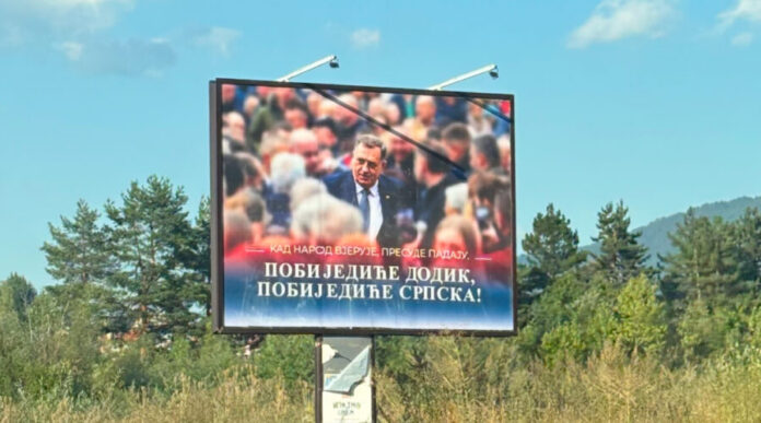 “Kad narod vjeruje, presude padaju. Pobijediće Dodik, pobijediće Srpska!”, poruka je ispisana na bilbordima.