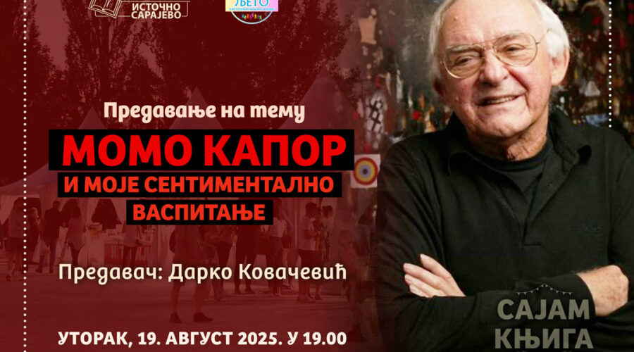 U okviru manifestacije „Ljeto u Istočnom Novom Sarajevu“, 19. avgusta na Trgu Republike Srbije, u okviru Sajma knjiga, od 19.00 časova održaće se predavanje Darka Kovačevića na temu „Momo Kapor i moje sentimentalno vaspitanje“.