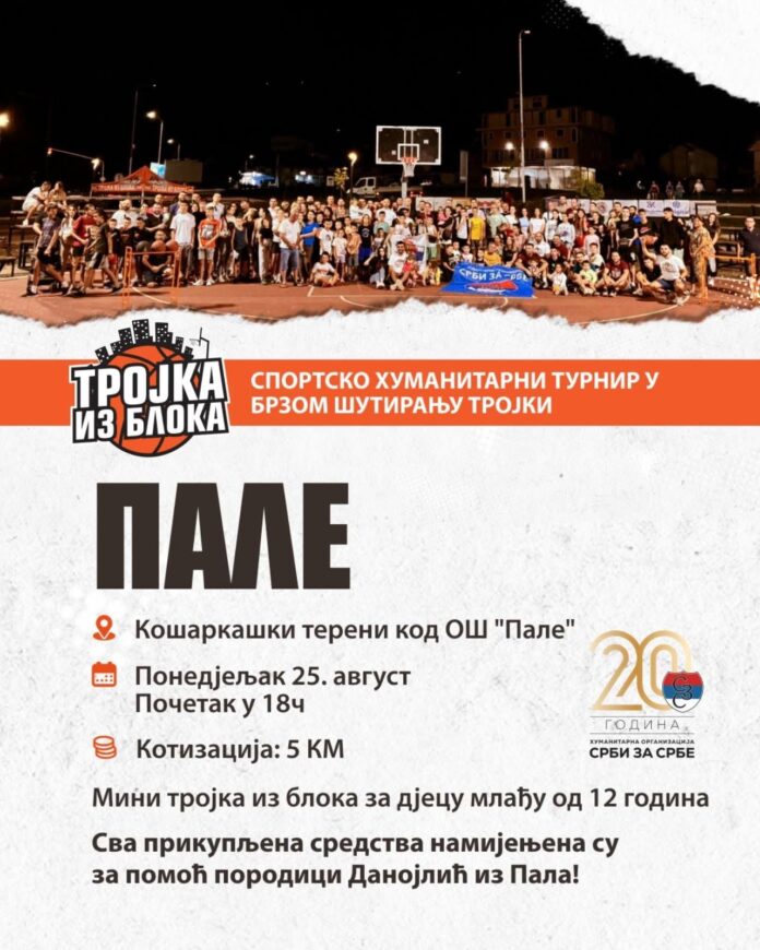 Спортско-хуманитарна манифестација „Тројка из блока“, седма по реду у Палама, биће одржана у понедјељак, 25. августа од 18.00 часова на кошаркашком терену поред Основне школе „Пале“.