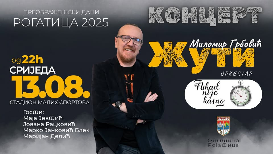 Na Stadionu malih sportova u Rogatici sutra će održati koncert Milomir Grbović Žuti sa gostima, uz pratnju benda „Nikad nije kasno“