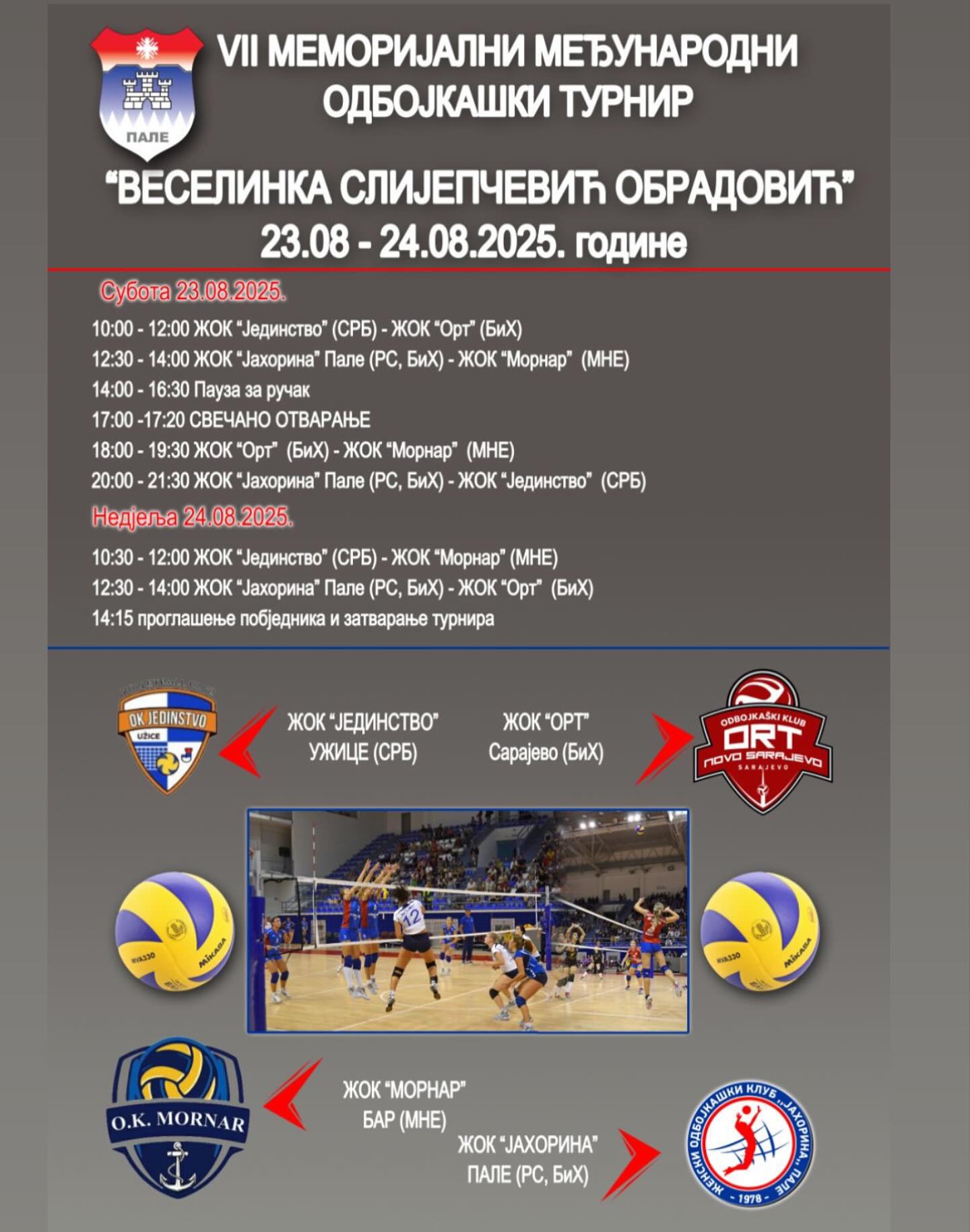 U okviru Gospojinskih svečanosti, koje se tradicionalno održavaju povodom slave opštine Pale – Velike Gospojine, biće organizovan sedmi memorijalni turnir posvećen Veselinki Slijepčević Obradović – ženi, majci i velikom sportskom radniku koja je ostavila neizbrisiv trag u razvoju odbojke u opštini Pale. Memorijalni turnir održaće se 23. i 24. avgusta 2025. godine u SPC „Peki“ Pale.