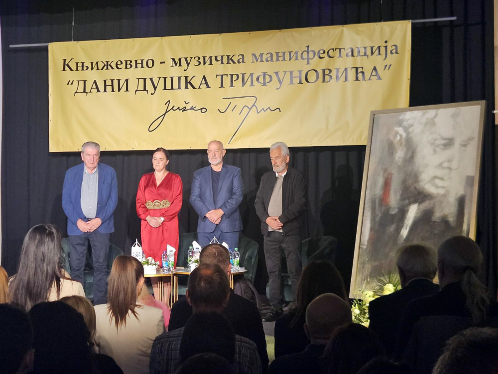 – Али оно шта је он написао и шта је урадио са језиком нашим, језиком српским, и шта је допринео нашој култури много је шире и озбиљније – рекао је Баковић и додао да би било добро да се направи и научни скуп о дјелу Душка Трифуновића и да се његов садржај штампа.