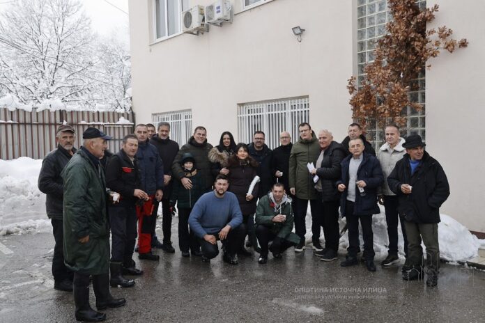 Načelnik opštine Istočna Ilidža Marinko Božović sa saradnicima dočekao je badnjak ispred zgrade Opštine.