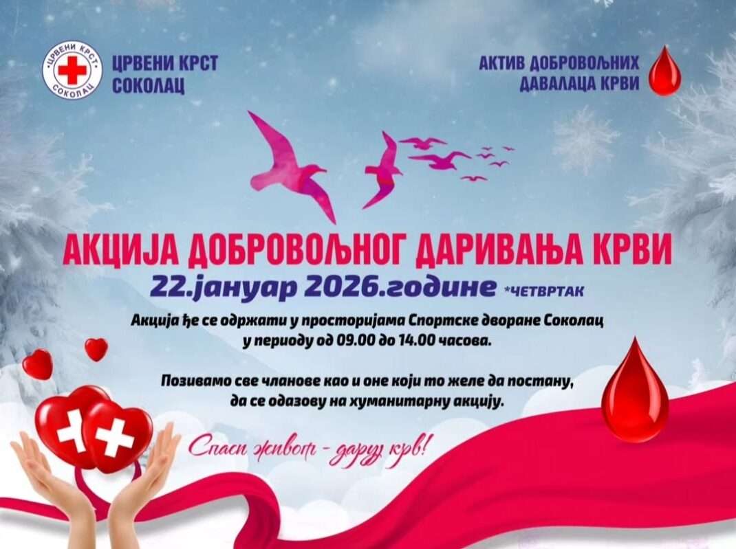 Актив добровољних давалаца крви при Општинској организацији Црвеног крста „Соколац“ сутра организује акцију добровољног даривања крви.