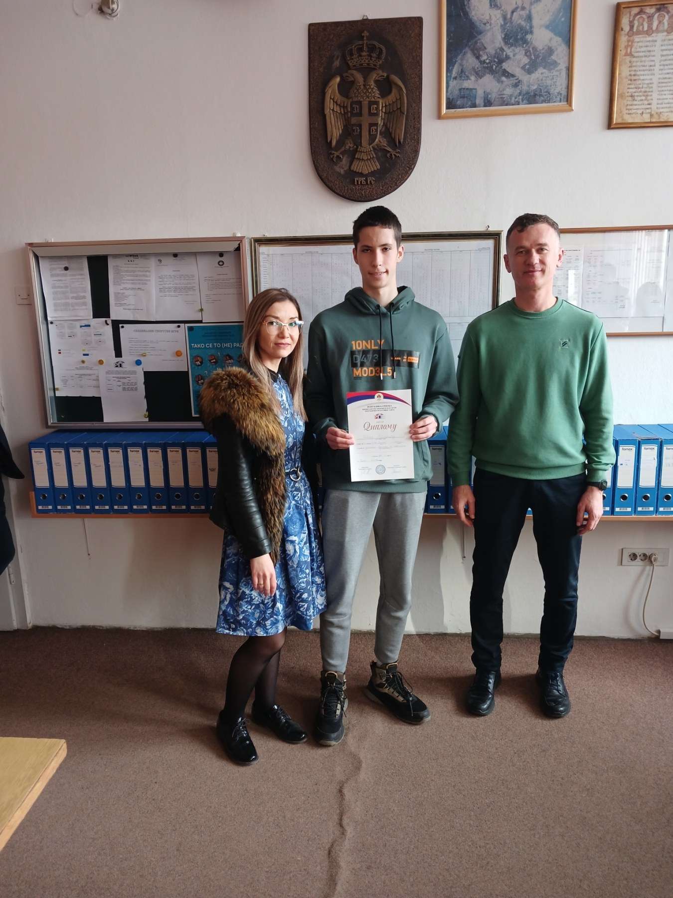 У категорији деветих разреда, ученик исте школе Новак Цвијетић освојио је 68 бодова и прво мјесто.
