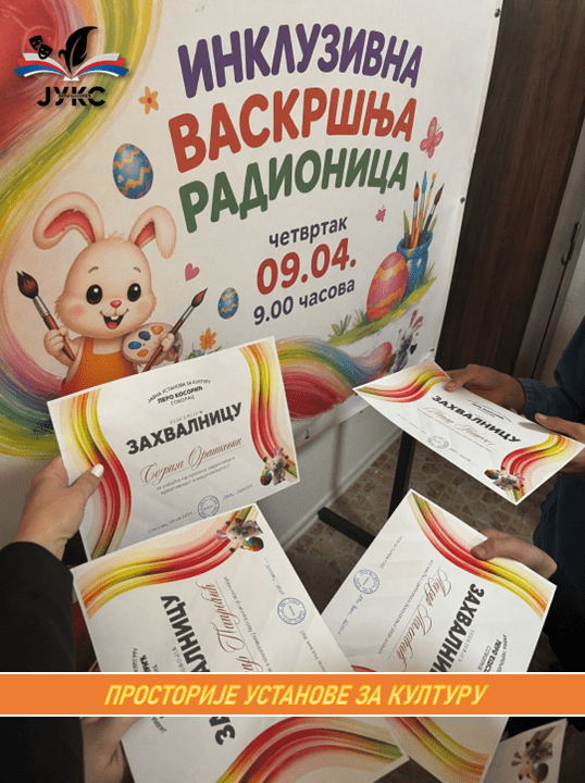 Јавна установа за културу „Перо Косорић“ Соколац организује Васкршњу креативну радионицу за дјецу са посебним потребама, која ће се одржати у четвртак 9. априла са почетком у 9.00 часова.